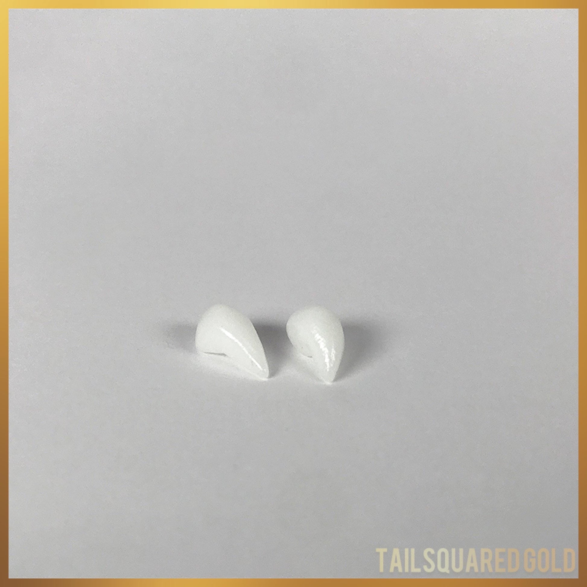 I love finishing my masks off with these hand-sculpted realistic fangs! Their hard plastic makeup looks and feels like real bone teeth. Each purchase includes 2 fangs. Sizes are approximate- each tooth is hand sculpted and may differ slightly from one set to the next. All teeth are made by me!